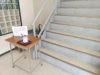 階段をのぼると教室です。階段はゆっくりのぼりましょうね。