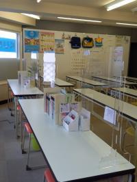 採点・音読確認席には全て飛沫防止パネルを設置しています。