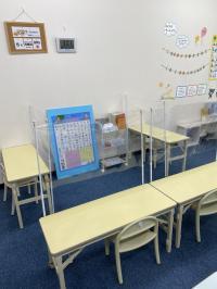 必要に応じ対面指導になる幼児席でも飛沫感染防止のカーテンを設置しています。