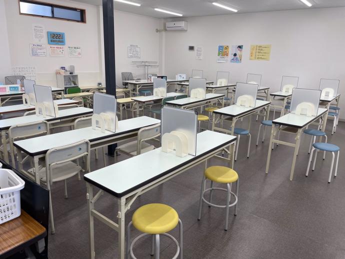 スクール形式で自立学習できます。机には仕切りや衝立を設置しています。