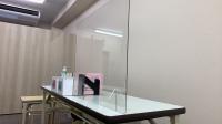 各スタッフ席にはアクリルパーテーションを設置。圧迫感のない自然な状態です。