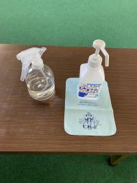 机と椅子もすべて消毒しています。