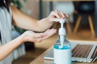 来室したら先ず消毒。マスクを忘れたら使い捨てマスクをご用意しております。