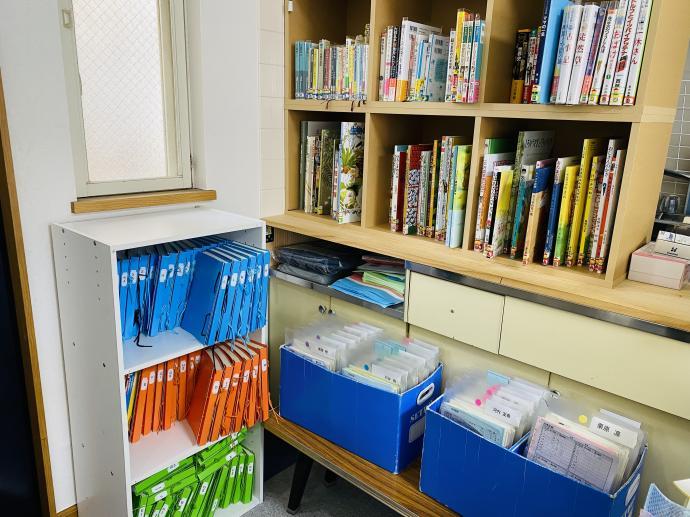 くもん文庫、見本教材コーナーです。たくさんの良い本に触れる機会を!