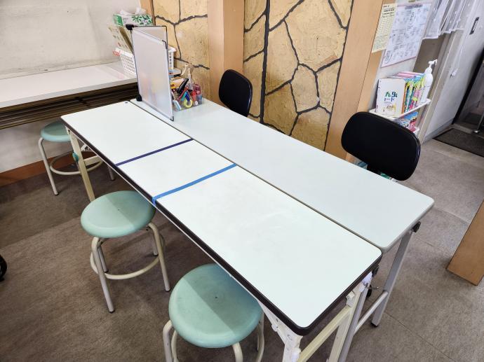 幼児さんの学習席です。学習後、お迎えまで、パズルや数字ばんをして待ちます。