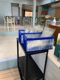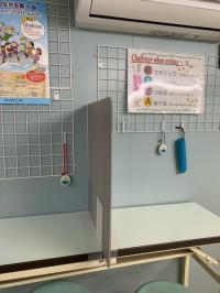 三密を避けるため、2人席に1人ずつ、交互に座るよ。集中してがんばるぞ!