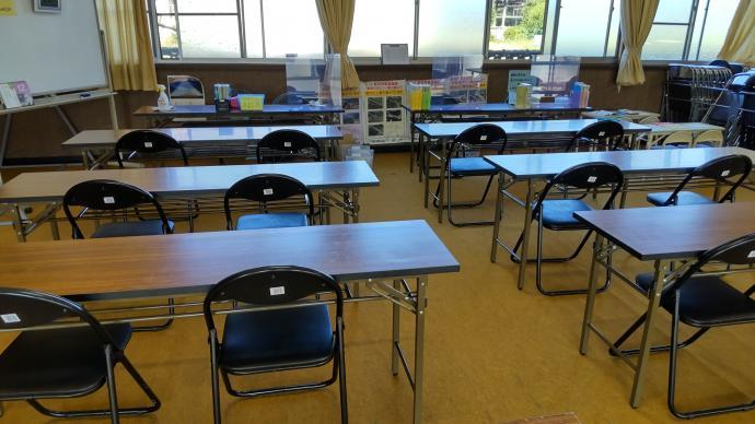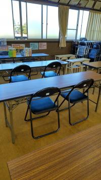 集会所の中は、広いので、ゆったり座って、感染症対策をしながら学習できます。