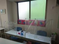 スタッフさんはフェイスシールド着用、飛沫シートも完備し、感染対策をしています。