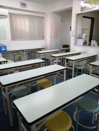 換気の徹底、消毒の徹底を行い。机も1本に1名にて間隔を取って学習しています。