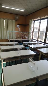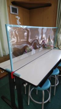 また、対面指導席にビニールシートを設置し、アクリル板も使用しています。