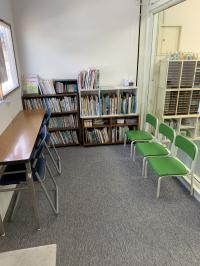 待合室もあります。本棚にはKUMONの推薦図書を多数置いています。