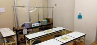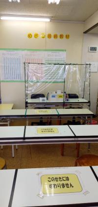 ・教室内の机やイス、ドアなどの備品を消毒。