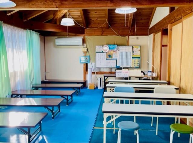 教室内部の様子。落ち着いて学習できる座り机、イス席や幼児席があります。