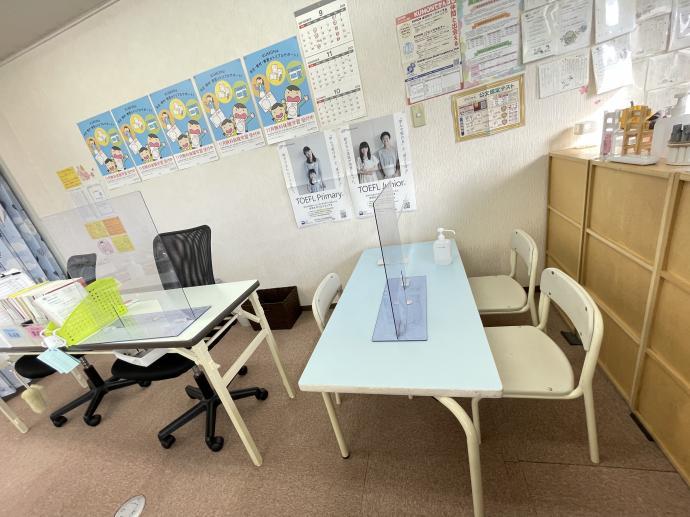小さい子用の机と椅子もあります。スタッフさんのすぐ横で学習してもらいます♪