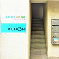 教室は、階段を上がってすぐの201です!見上げてKUMONの旗、見えるかな