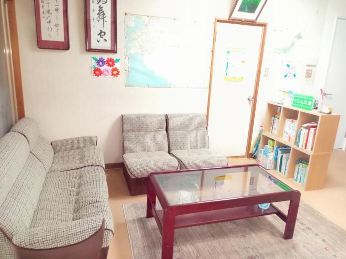 待合スペースです。お迎えを待つ間、本を読んだりパズルをしたりしています。
