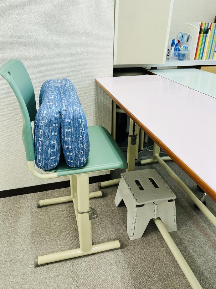 背が小さい幼児さんは足が下に付く様に調整して学習します。
