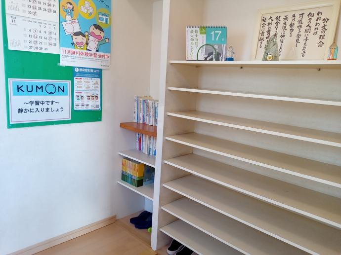 入口すぐはカバンやランドセルが置ける、フリースペースになっています。