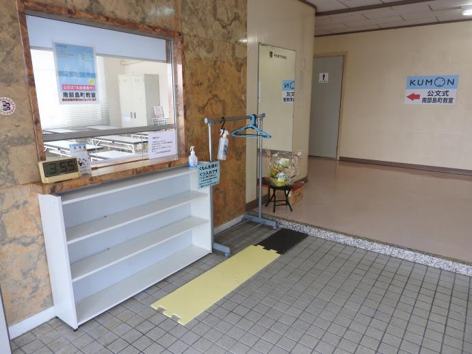 くもん生徒専用の下駄箱とコート掛け、かばんは専用の置き場所が有り