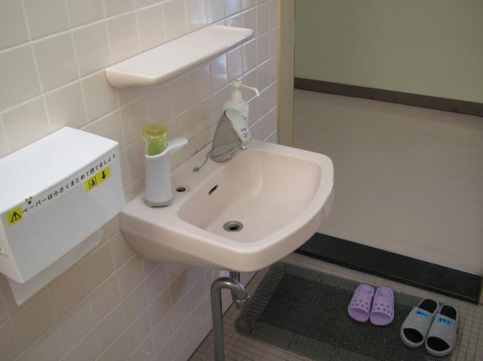 お手洗いは男女別室の洋式トイレです。洗面所は自動水栓でしっかりと予防対策が可能