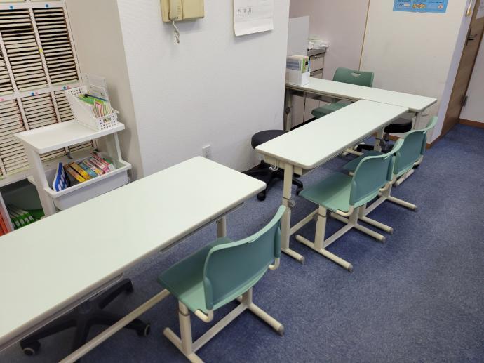 小さなお子様でも学習しやすいよう、低い机、椅子の対面席を用意しております。