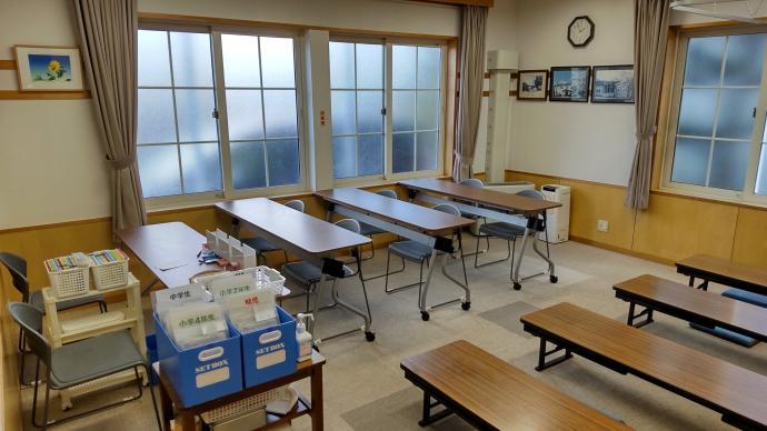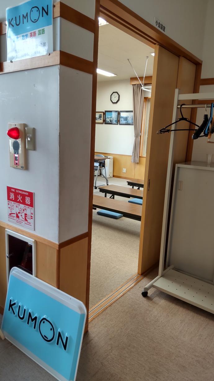 教室(小会議室)の入口です。ランドセルや上着などを置いて、入室します。