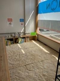 待合スペースで本を読んだり、教具で遊んだりして、お迎えを待ちます♪