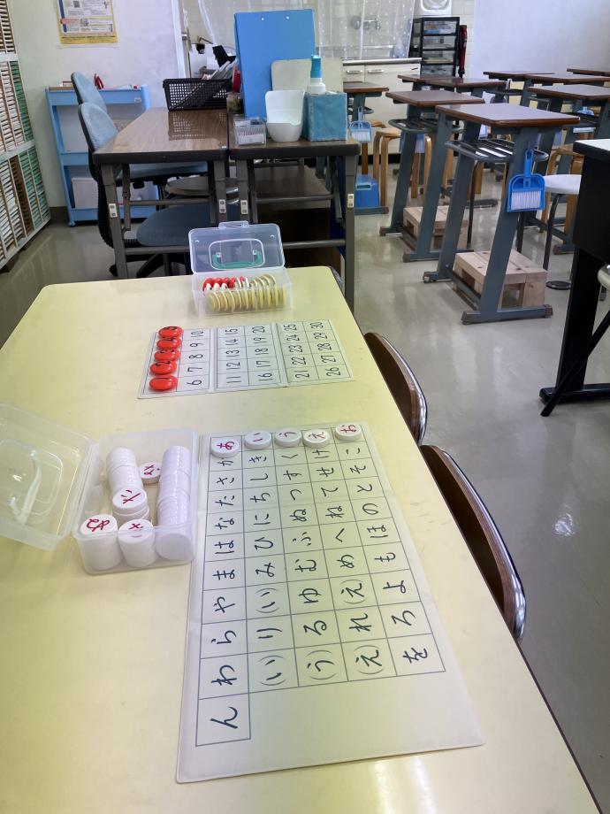 くもんカードの時間やマッチング教材と手作業