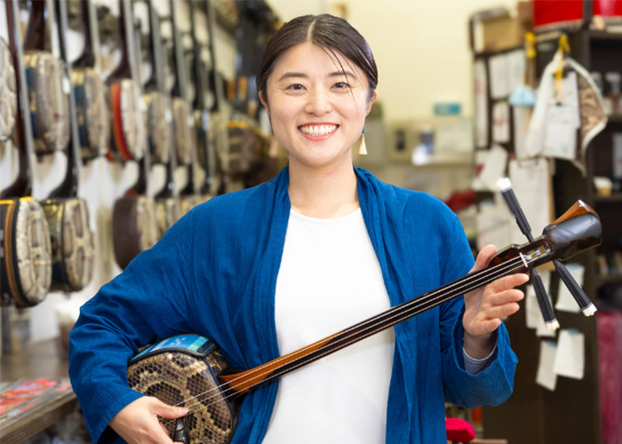 当時は三線とは関係ない外資系の会社で仕事をしていましたが、仕 事中にも三線のことが頭から離れなくなり、また、社長に勧められ て沖縄で出場した唄三線の大会で最優秀賞を頂けた嬉しさもあり、 だんだん生活が三線中心になっていきました。ちょうどその頃「ち んだみ三線店」東京の練馬移転にあわせて、社長からスタッフとし て働いてみないかとありがたく声をかけられ、思い切って会社をやめ、「ちんだみ三線店」 で働かせてもらうようになりました。