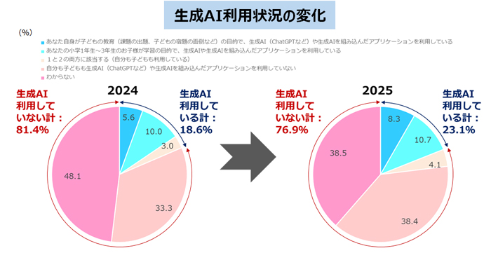 子どもの家庭学習に「生成AI利用している」は23.1%