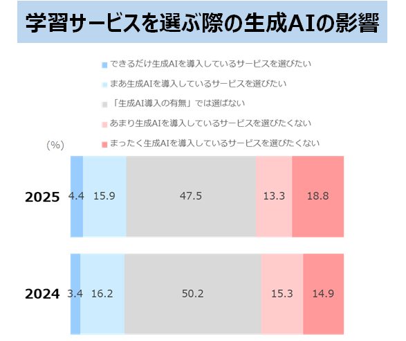 家庭学習での生成AI利用を「増やしたい」という保護者が29.2%、「利用したくない・減らしたい」は28.9%