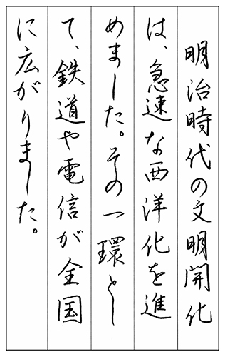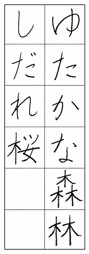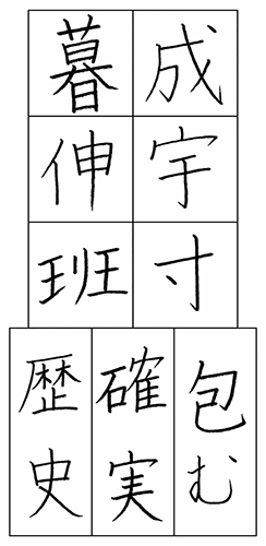 主に子どもが学習しています。級は10級~1級、段は初段から十段まであり、審査の結果、最優秀となった作品をご紹介いたします。