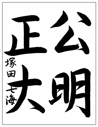 毛筆は子どもから大人まで学習しています。級は10級~1級まで、大人と子どもで分けて審査します。段は初段~十段まで、大人子ども分けずに審査します。審査の結果、最優秀となった大人の作品をご紹介します。