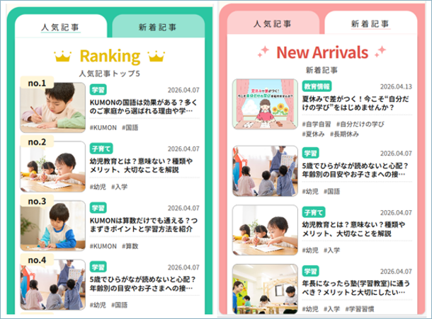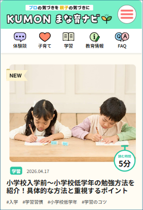 2026年4月に、教育に関する情報を発信するコラム記事ページ「KUMONまな育ナビ」をリリースいたしました。