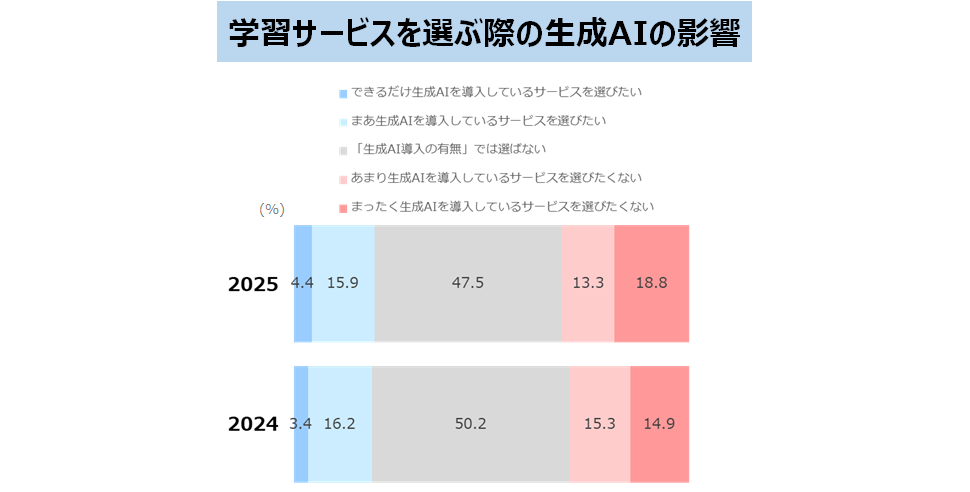 家庭学習での「生成AI利用」を「増やしたい」が29.2%、「利用したくない・減らしたい」は28.9%